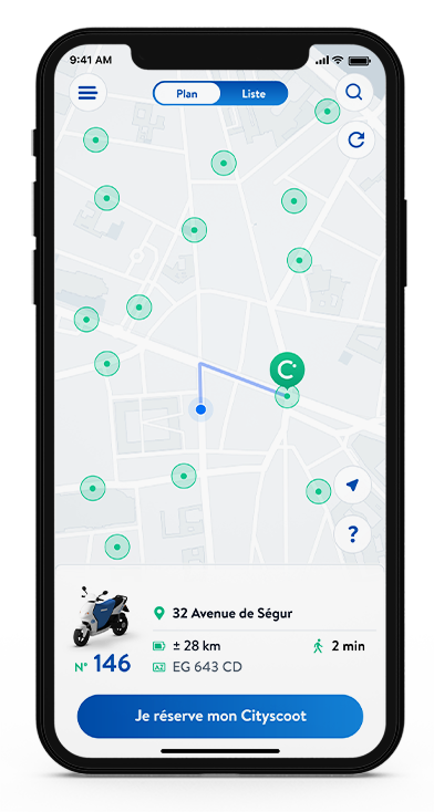 Il y en a toujours un près de vous ! Repérez dans l’application le scooter le plus proche ou autour de l’adresse de votre choix.